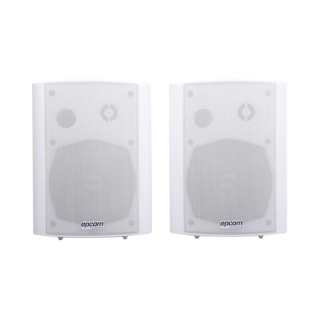 El paquete de altavoces activos está diseñado con controles de volúmen y tono. La potencia de salida nominal es de 20W estable a 8 Ohms. El gabinete está hecho en ABS, la rejilla de metal y el soporte o montaje de metal son de acabado blanco, el montaje se coloca de manera fácil y va incluído.