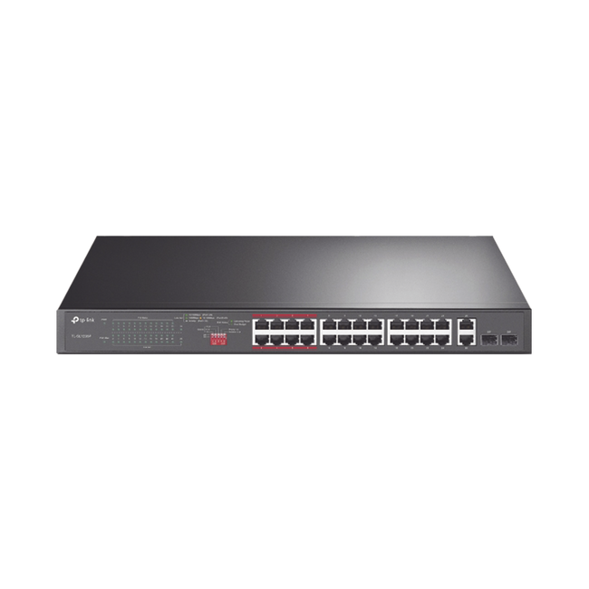 Switch 24-Puertos 10/100Mbps + 2-Port Gigabit PoE+ No Gestionable     24× puertos PoE+ 10/100 Mbps RJ45, 2× puertos Gigabit RJ45, y 2× slots combo Gigabit SFP Alta potencia PoE hasta 30...