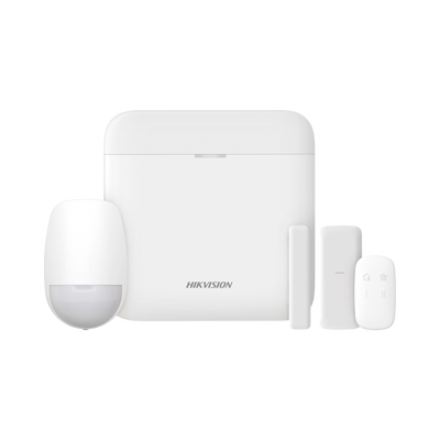 (AX PRO) KIT de Alarma AX PRO con GSM (3G/4G) / Incluye: 1 Hub con bateria de respaldo / 1 Sensor PIR / 1 Contacto Magnético Slim / 1 Control Remoto / Wi-Fi / Compatible con Hik-Connect P2P