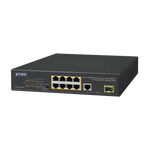 Switch no Administrable 8 puertos 10/100 PoE 802.3af/at 135W, 1 puerto Uplink 10/100/1000 y 1 SFP 100/1000 para escritorio