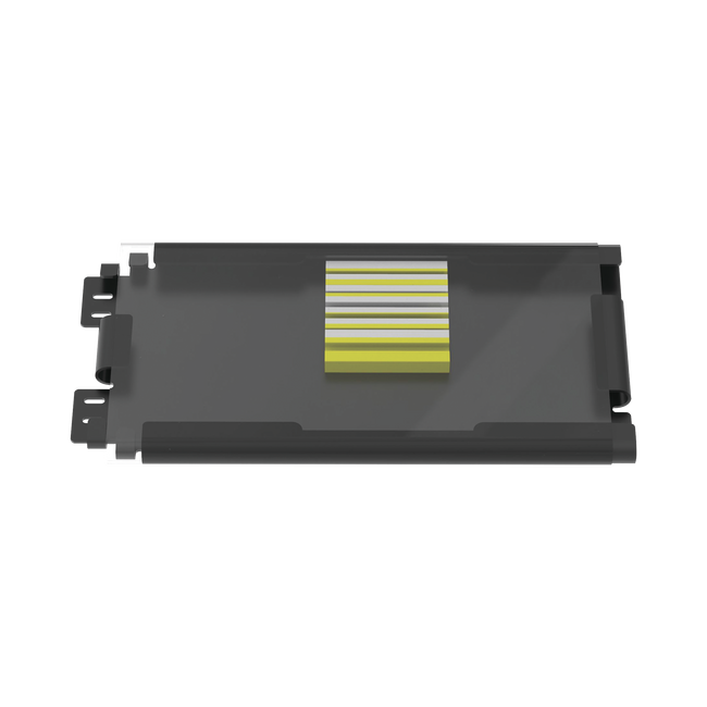 El kit de bandeja de empalme de fibra soporta 6 empalmes mecánicos o por fusión. Se adapta a los gabinetes de las series Panduit FWME2 y se apila hasta dos de alto usando la unidad de apilamiento FSTHS en gabinetes de montaje en pared.