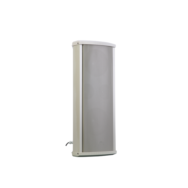 Altavoz para exterior de alta potencia tipo columna, estructura completamente metálica. Transformador de 70V y 100V incorporado que reduce las perdidas de línea y permite llevar el sonido a una mayor distancia. Nivel impermeable IP66, con materiales de la más alta calidad los cuales aseguran la durabilidad de esta bocina; Ideal para cubrir proyectos como campus universitarios, escuelas, estacionamientos, parques o cualquier otro lugar al aire libre que requiera potencia e inteligibilidad en el mensaje.